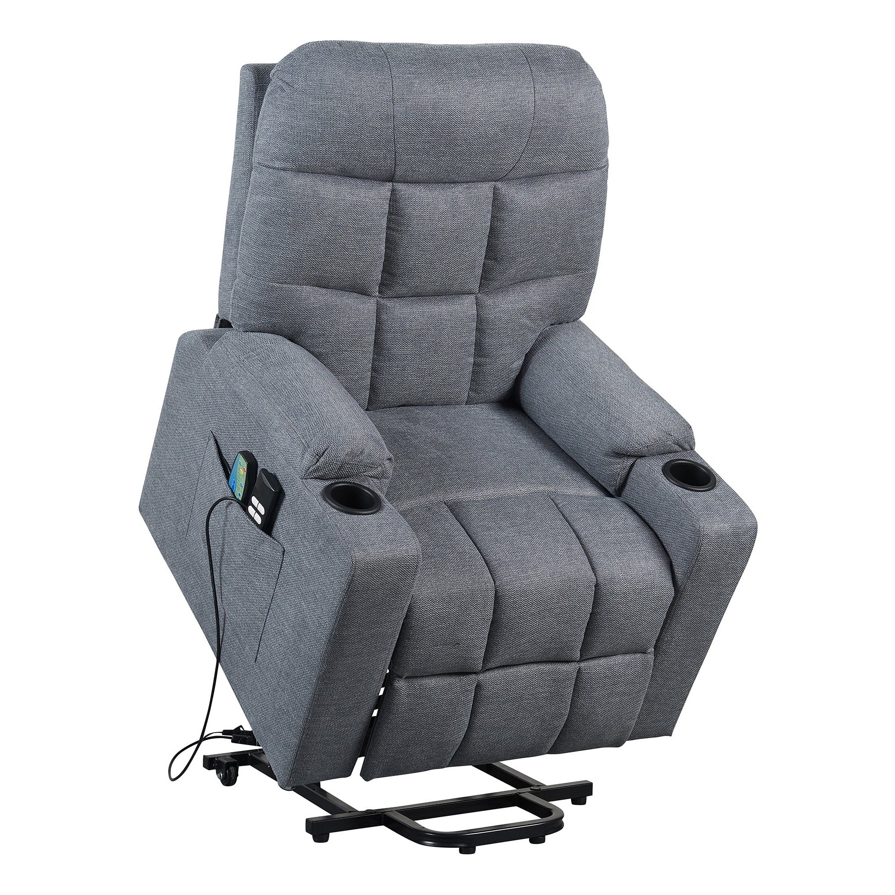 Alzapersona + 2 motori per reclinazione indipendente di schienale (max 160°) e pediera (fino altezza di seduta). Vibromassaggio: polpacci, seduta, lombari e spalle e Riscaldamento seduta. 4 ruote con freno per spostare utente seduto. Schienale in fiocco, Seduta con micromolle e topper 3 cm.