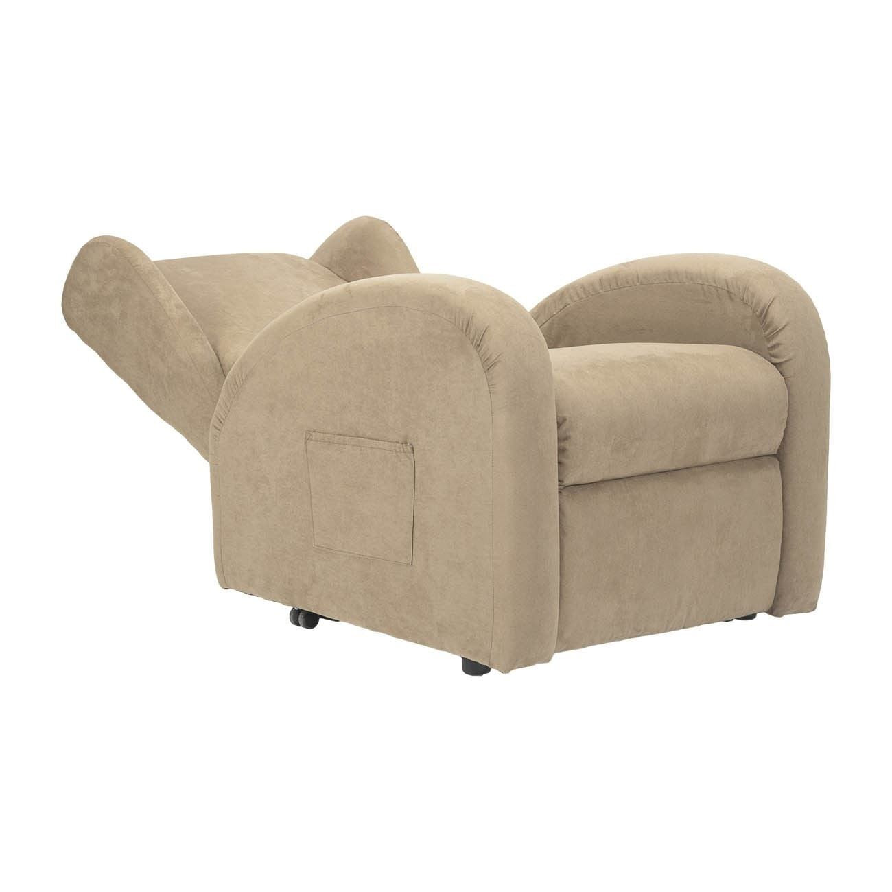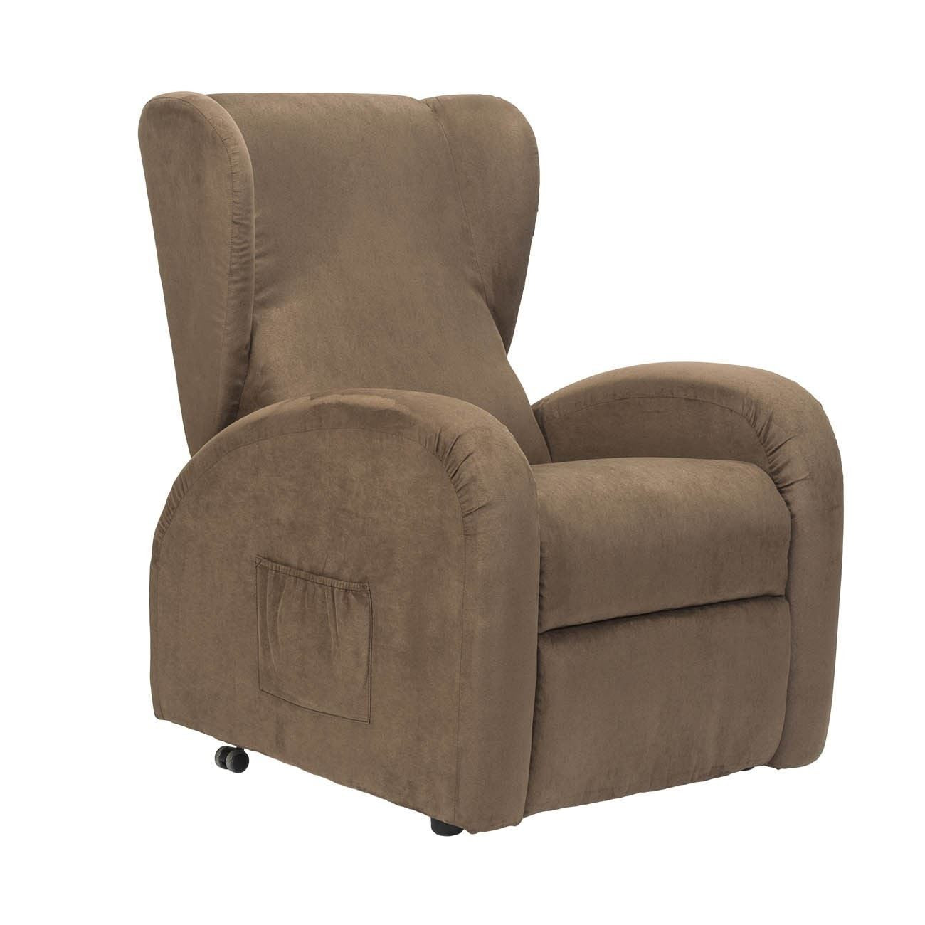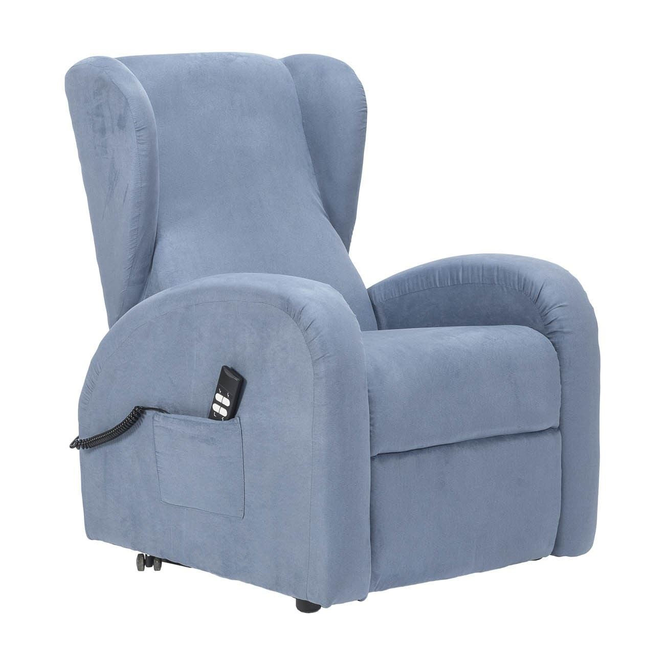 Alzapersona + 1 motore per reclinazione combinata di schienale (max 150°) e pediera. 4 ruote con freno per spostare utente seduto. Microfibra. Seduta con micromolle e topper 3 cm.